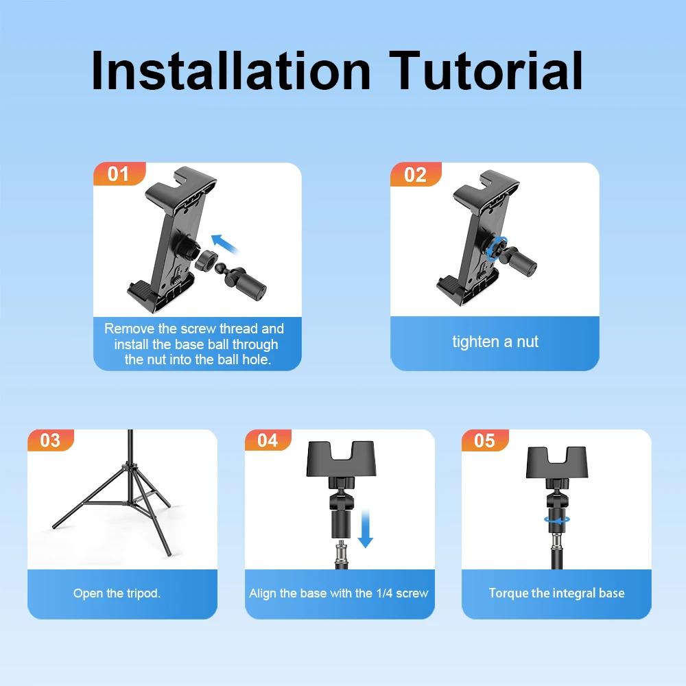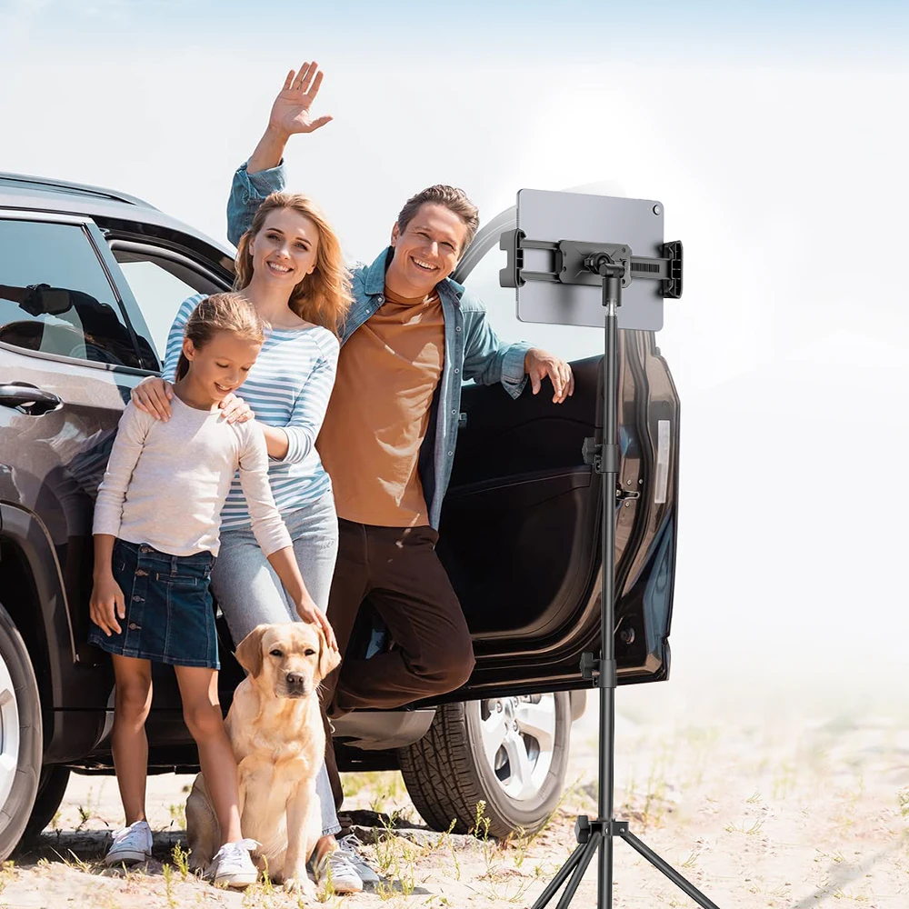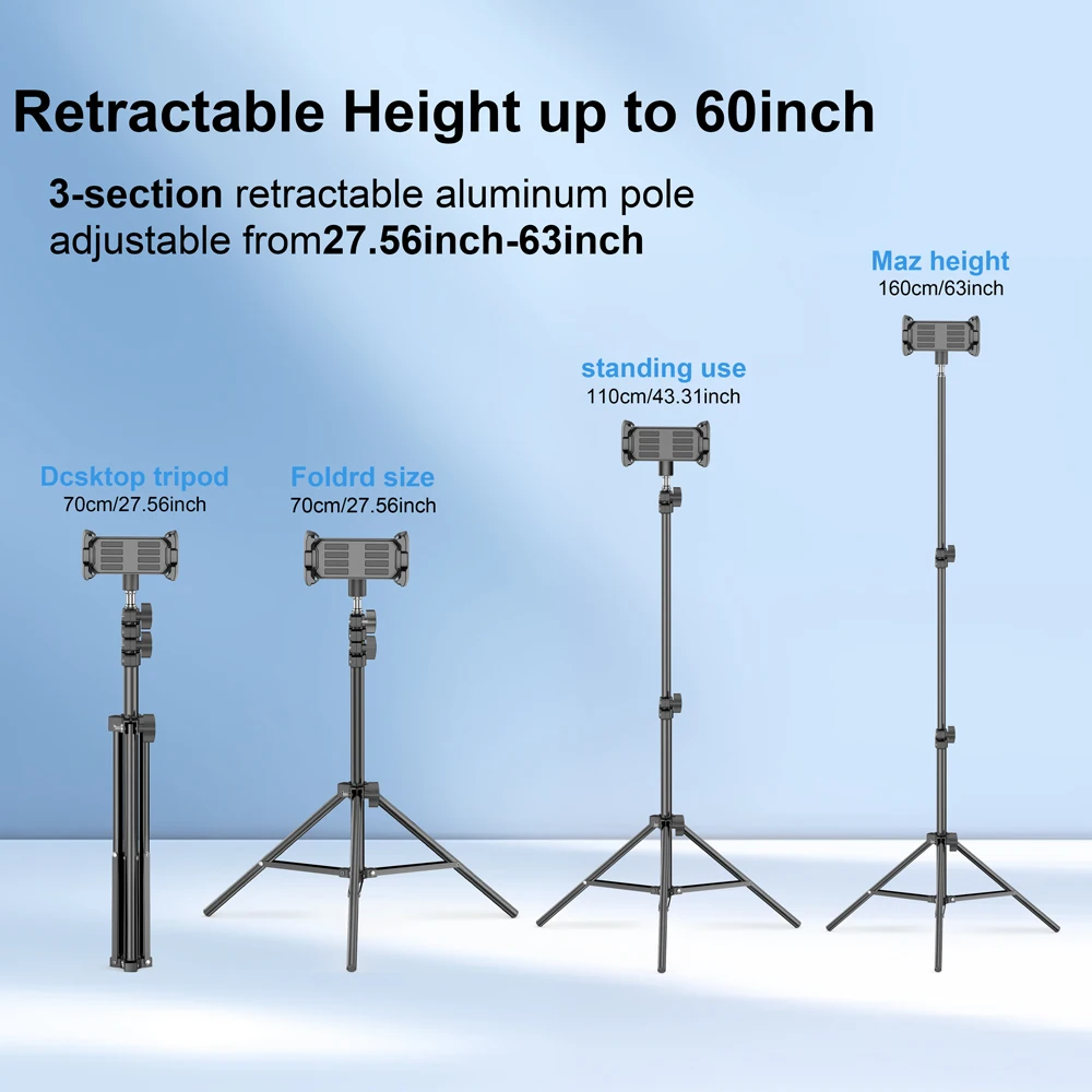 Adjustable Tripod Tablet Floor Stand 360° Rotating Holder, 24”-65” Height for 4-14” Tablets, Foldable & Portable Universal Mount• Adjustable holder mount :